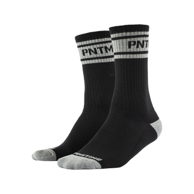 Black-washed, oversized, cropped, 100% organic cotton t-shirt with PNTM logo embroidery.