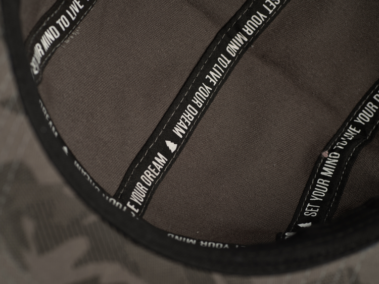 Stylish 5 panel strapback cap with signature Pinetime AOP